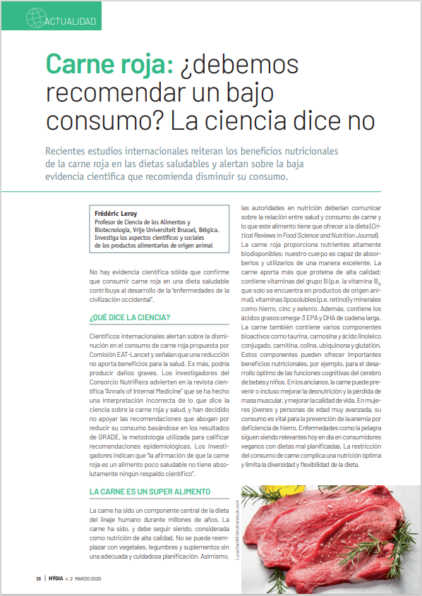 Disfruta de este artículo científico, publicado por Frédéric Leroy, Profesor de Ciencia de los Alimentos y Biotecnología. Investiga los aspectos científicos y sociales de los productos alimentarios de origen animal visitando el siguiente enlace de la revista Hygia.
